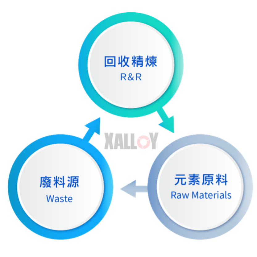 - 秉持綠色全循環理念,能回收處理固體、液體等多元廢料源,建立五種貴金屬金、銀、鉑、鈀、釕和重要金屬銅等六大貴稀金屬回收精煉的服務平台。